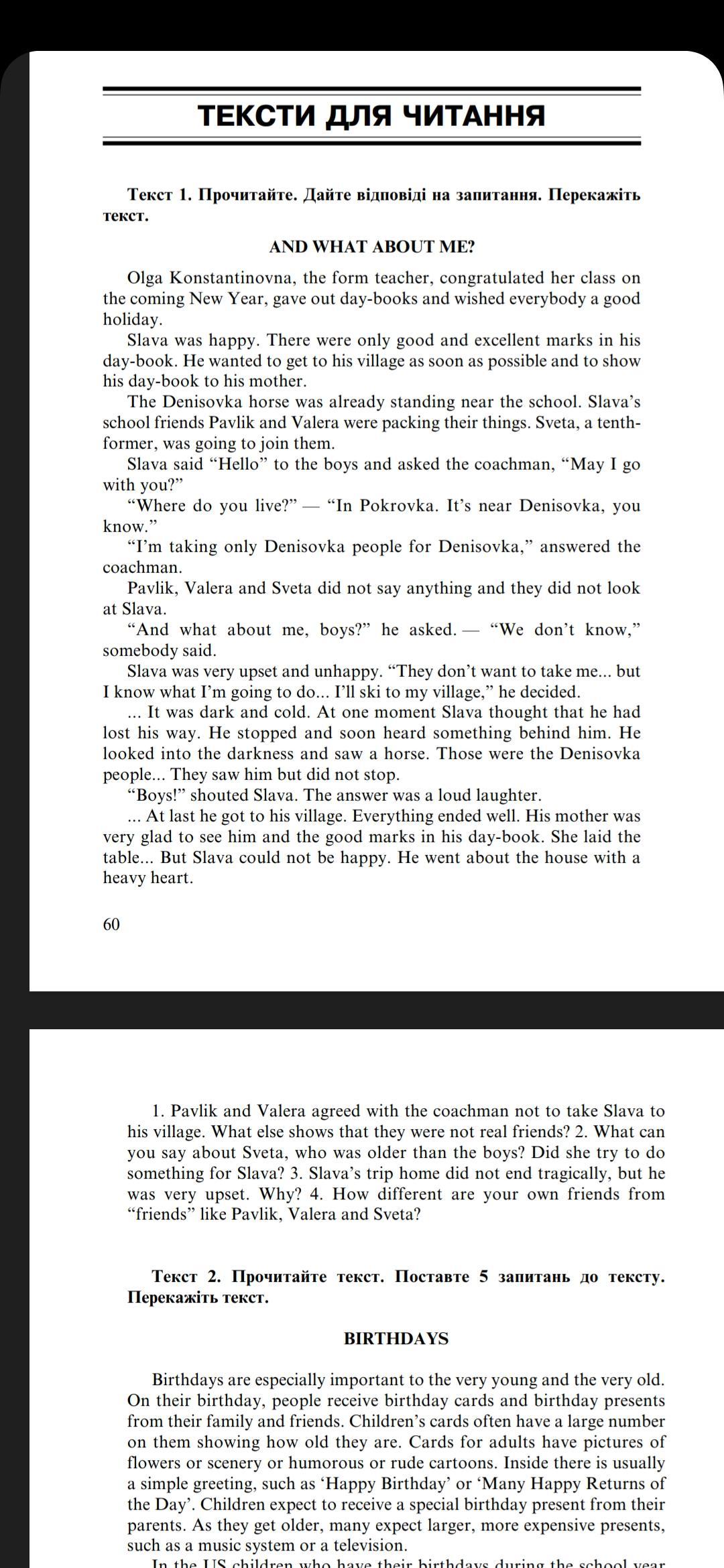 Pavlik and Valera agreed with the coachman not to take Slava to his village. What else shows that they were not real friends? 2. What can you say about Sveta, who was older than the boys? Did she try to do something for Slava? 3. Slava's trip home did not end tragically, but he was very upset. Why? 4. How different are your own friends from "friends" like Pavlik, Valera and Sveta?
