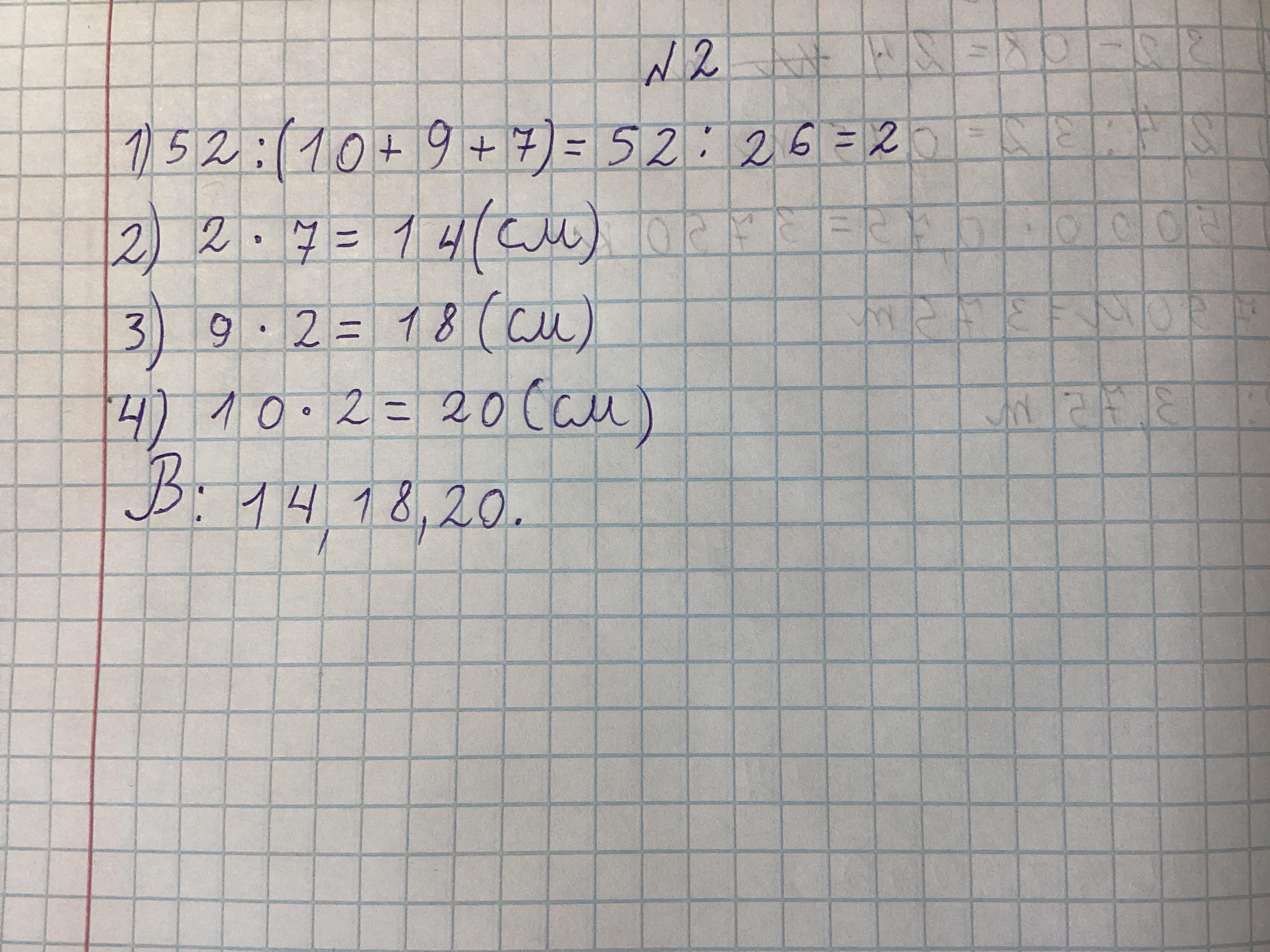 Периметр трикутника дорівнює 52 см, а довжини сторін відносяться, як 7:9:10. Знайдіть довжини сторін трикутника.