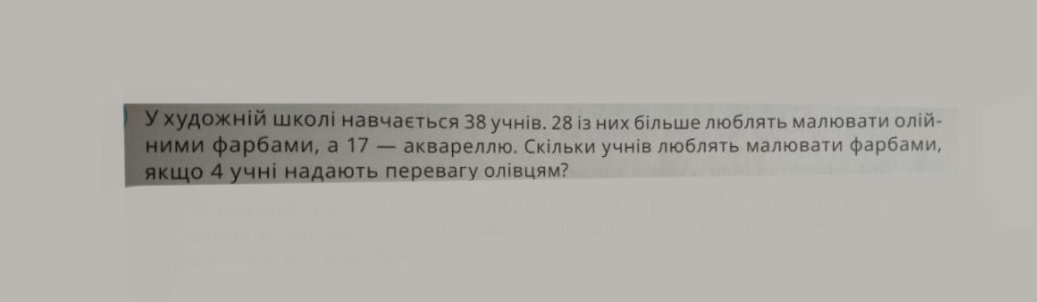 Отже, загальна кількість учнів, які люблять малювати фарбами (олійними або акварельними), дорівнює: