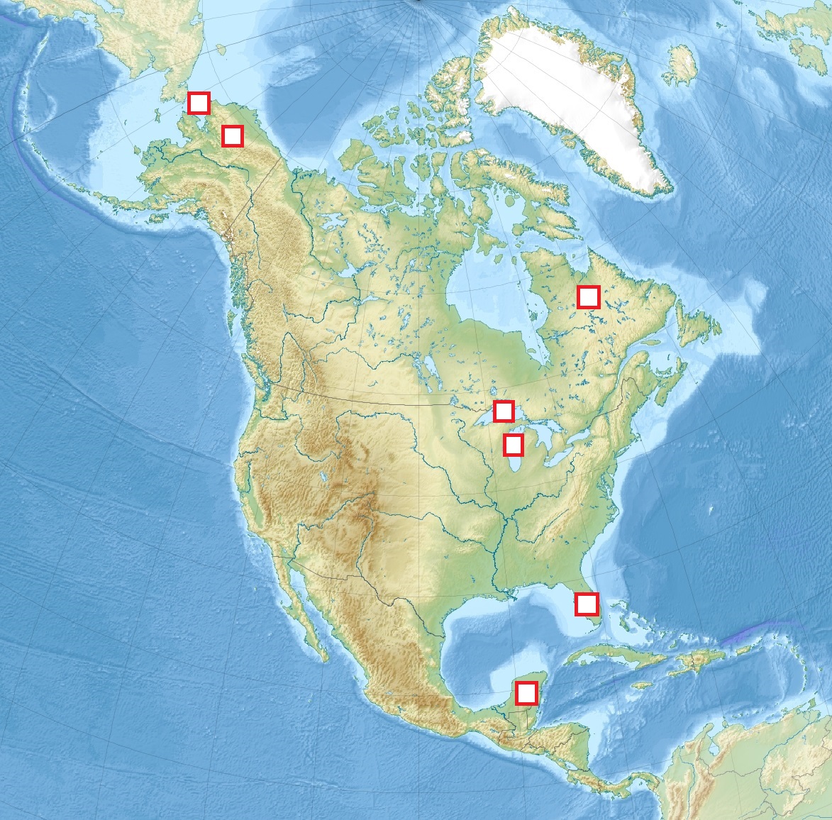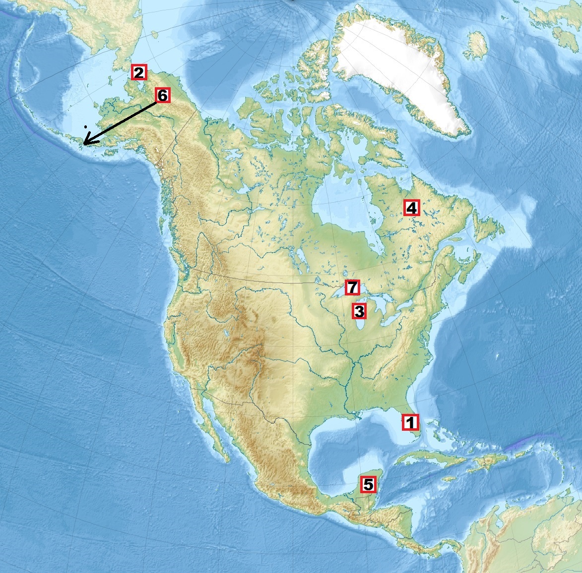 Поставьте номера указанных географических объектов от самого северного к самому южному.