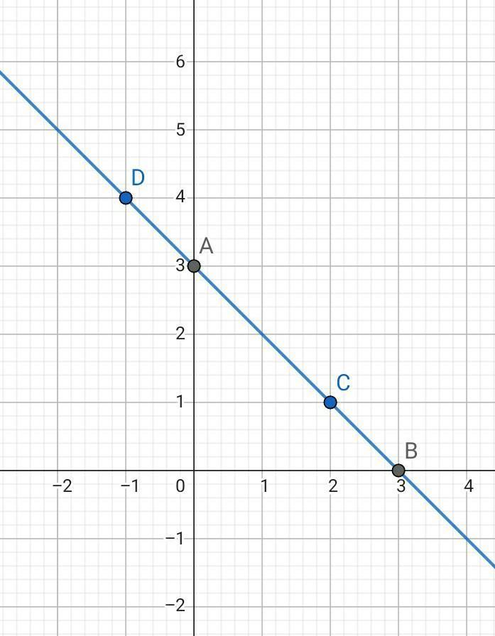 Побудуйте графік лінійної функції y=-x+3. Користуючись графіком, установіть відповідність між твердженням і точкою.