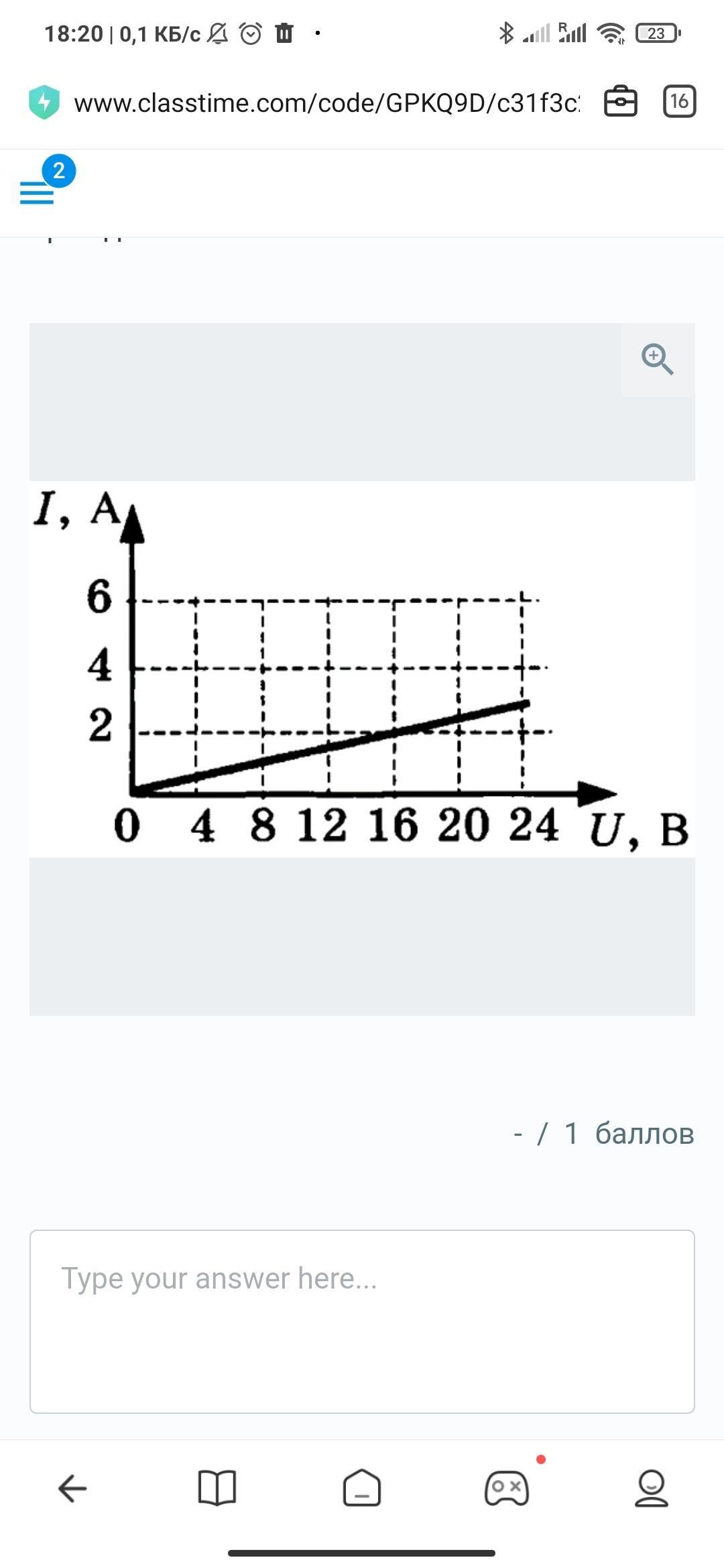 Согласно графика, при напряжении 16В сила тока равна 2А