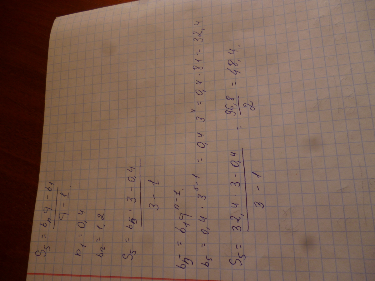 В геометрической прогрессии b1 =0,4, a b2=l,2. Найдите сумму пяти первых членов этой прогрессии.