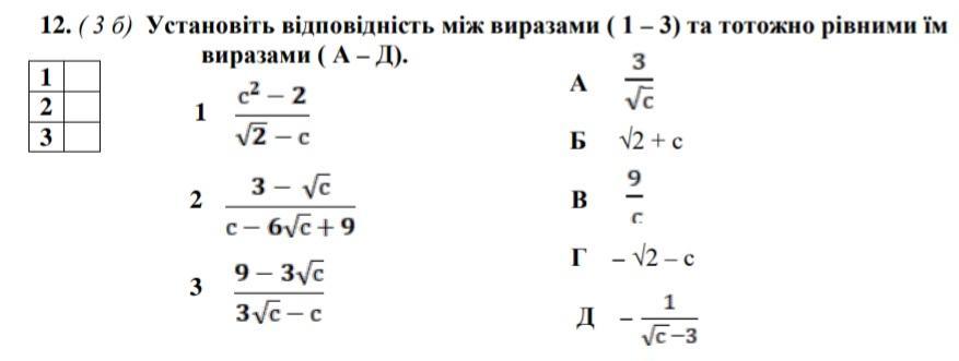 Установіть відповідність між виразами ( 1 –3) та тотожно рівними їм виразами ( А – Д).