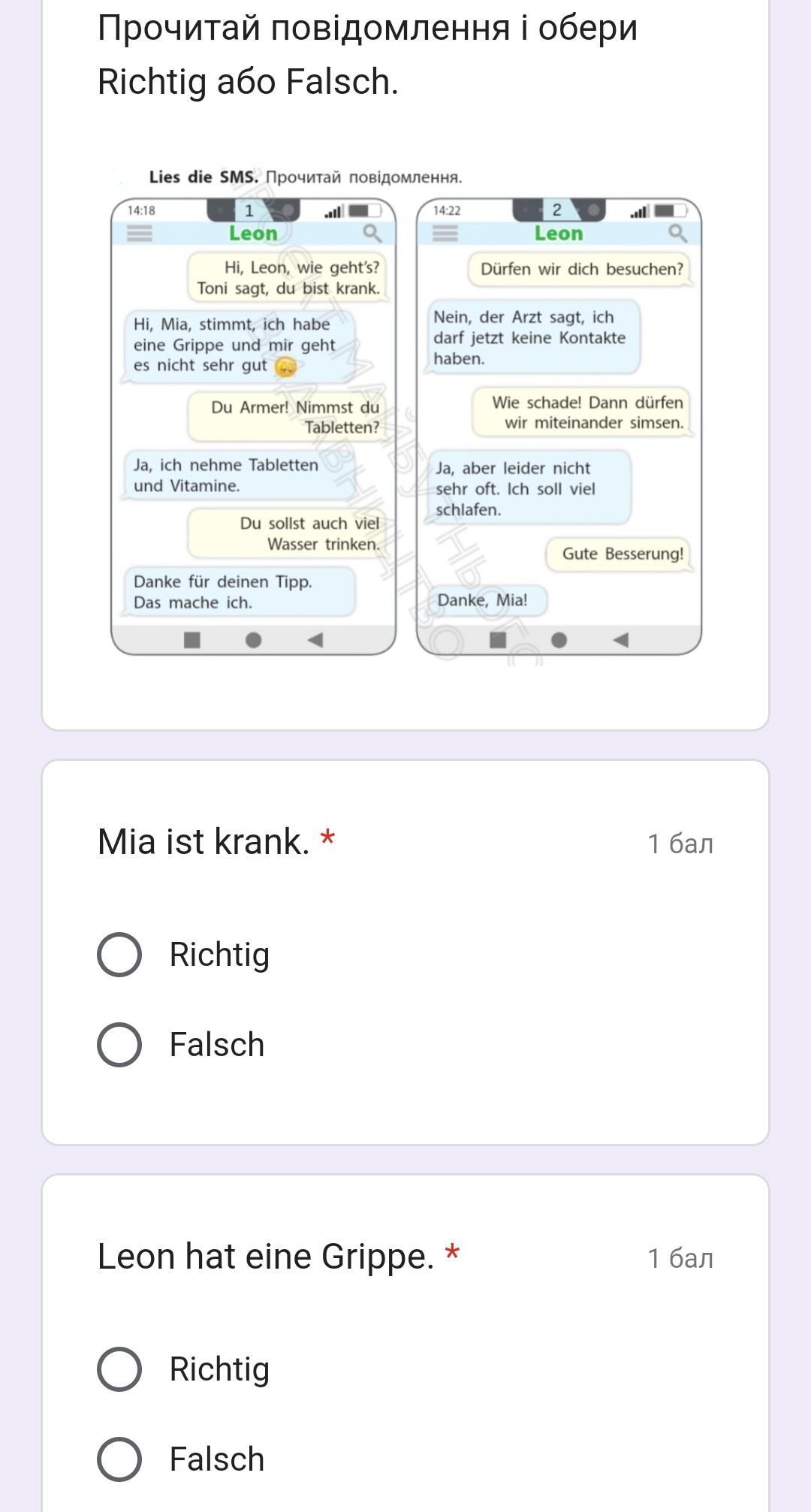 1. Неправда, тобто Falsch.