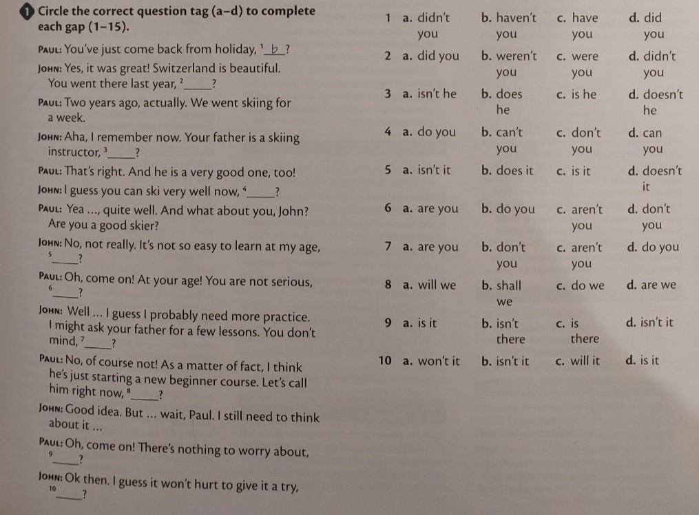 English e/ha christ Circle the correct question tag (a-d) to complete each gap (1-15).