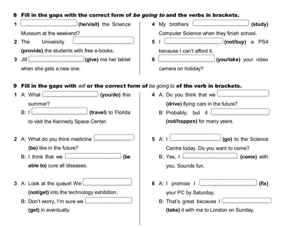 упр8. 1. Is he going to visit. 2. is going to provide. 3. isgoing to give. 4 . are going to study. 5. am not going to buy. 6. Are you going to take.