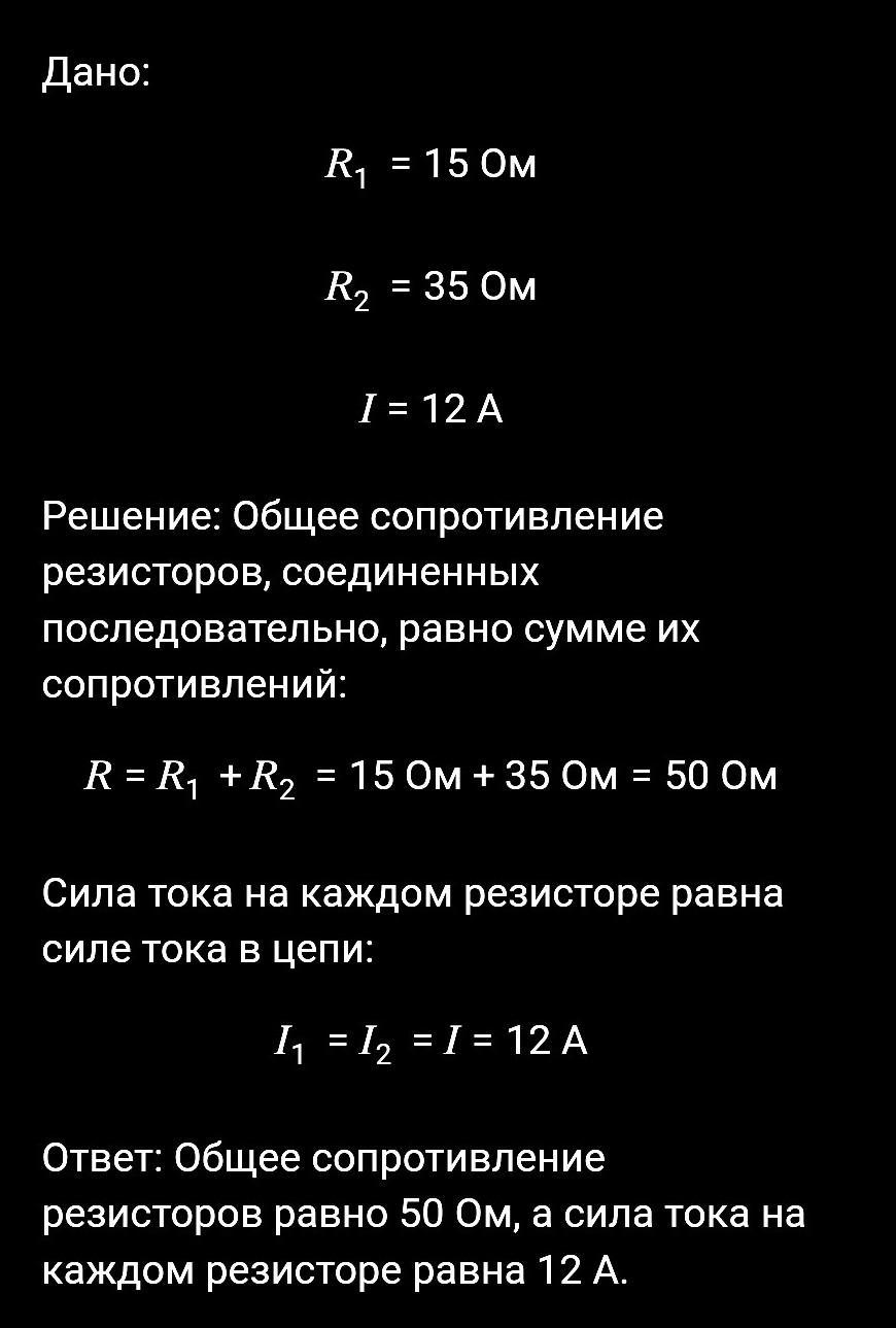R = R1 + R2 = 15 Ом + 35 Ом = 50 Ом