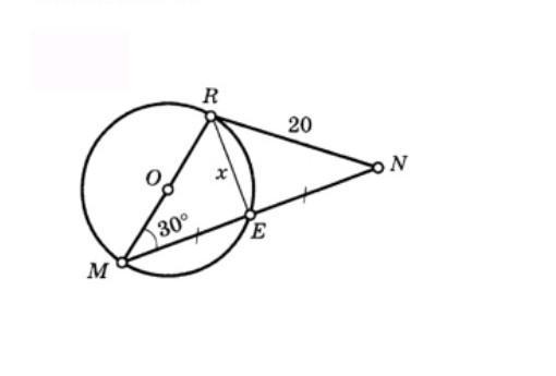 У даному випадку, ми маємо трикутник RME з відомими кутом RME (30°) та довжиною сторони RN (20), а також з ME = EN і RE = x, яке ми маємо знайти.