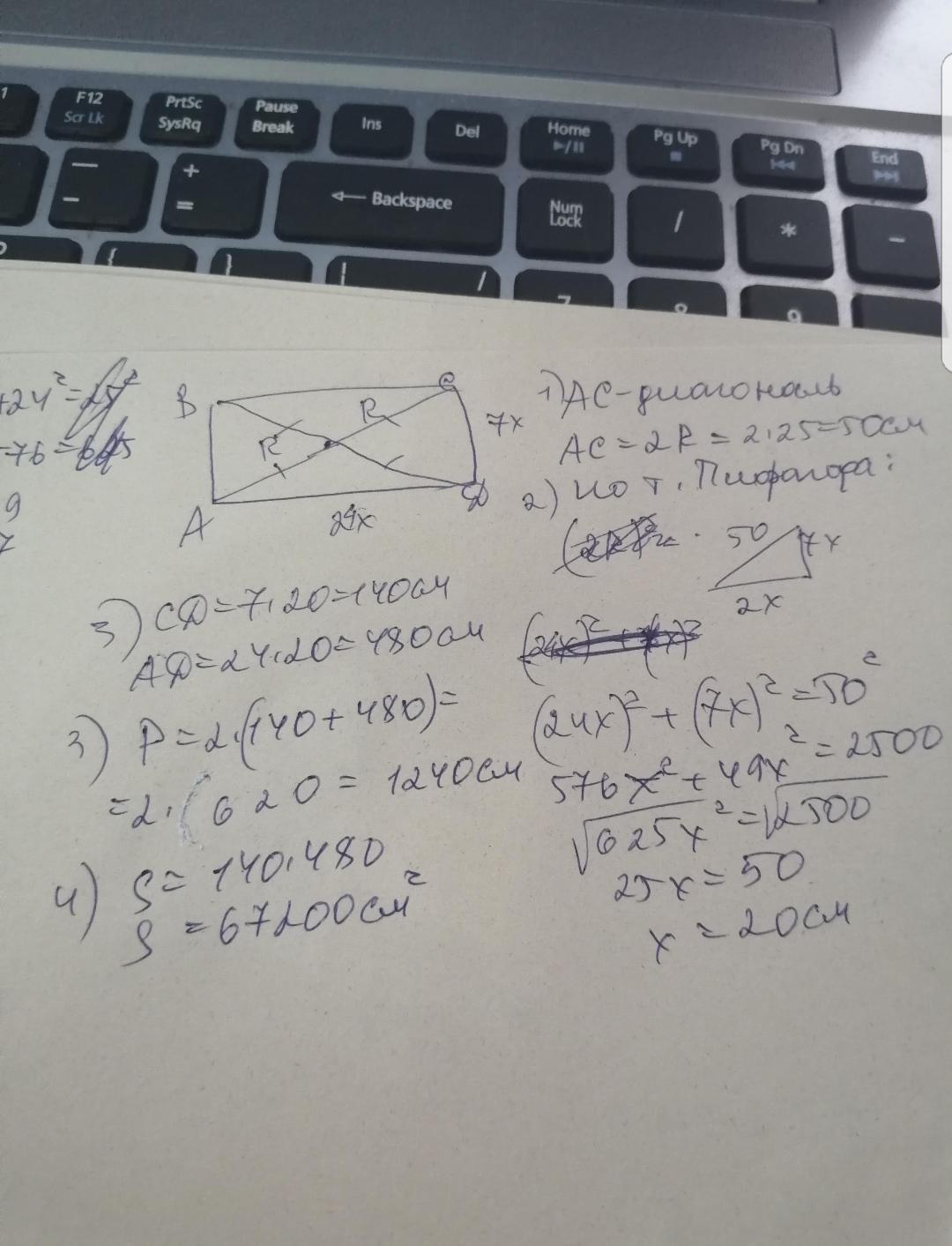 Сторони прямокутника відносяться, як 8 : 15, а радіус кола, описаного навколо прямокутника, дорівнює 17 см. Знайдіть периметр та площу прямокутника.