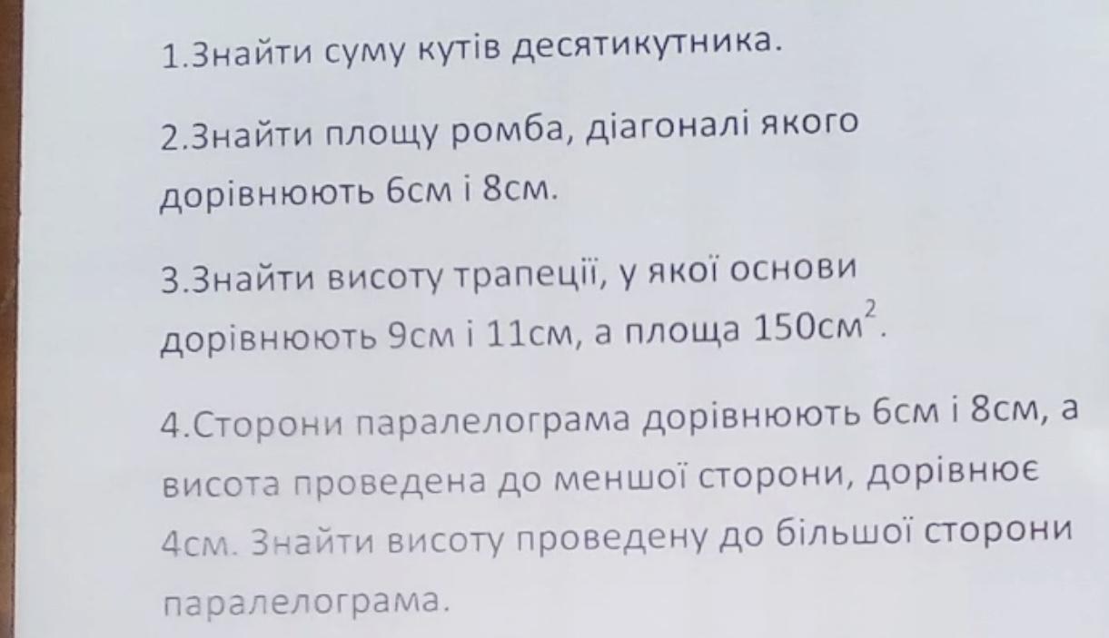 3) Щоб знайти висоту трапеції з відомими основами 9 см і 11 см та площею 150 см², використаємо формулу для площі трапеції: