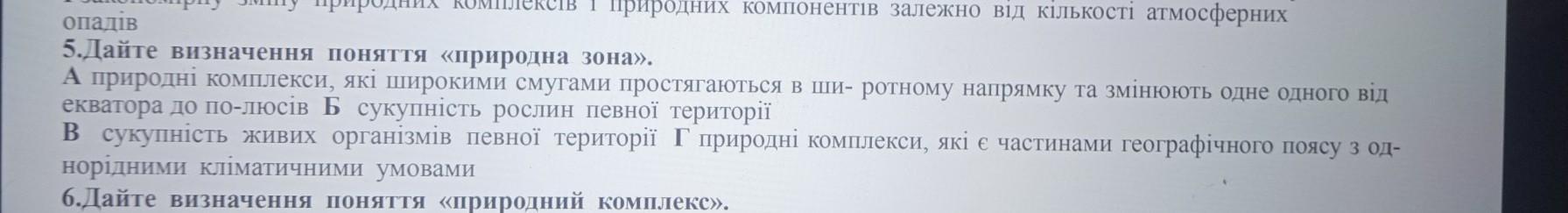 Ответ: ответ Г природні комплекси, які є частинами географічного поясу з однорідними кліматичними умовами