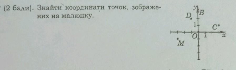 3° (2 бали). Знайти координати точок, зображе- них на малюнку.