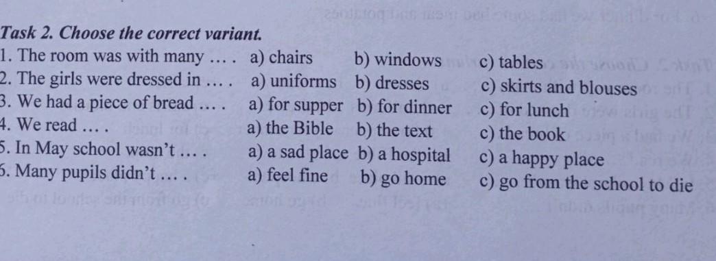 Task 1. Put "+" if the statement is true and "-" if the statement is false. 1. A man took my things. 2. The teacher took me into a short room. moos 3. Girls sat on chairs. It was very cold in the room.