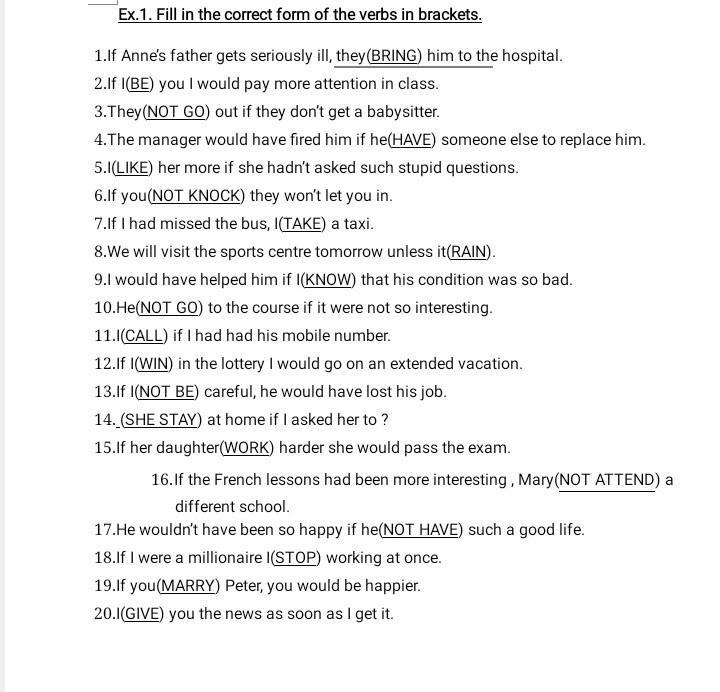 16. If the French lessons had been more interesting, Mary wouldn't have attended a different school.