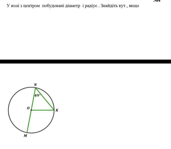 У колі з центром побудовані діаметр і радіус . Знайдіть кут , якщо!