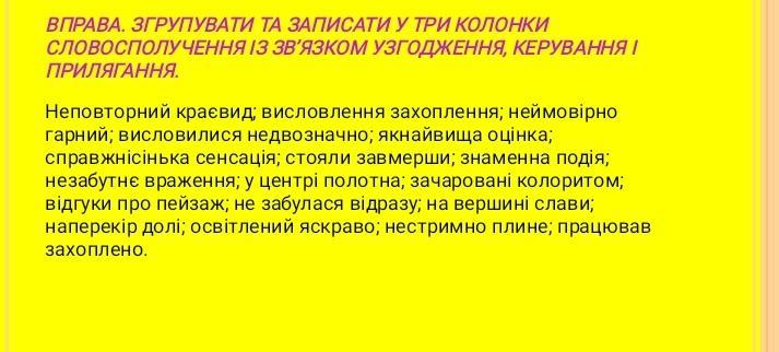 Керування: висловлення захоплення, у центрі полотна, зачаровані колоритом, відгуки про пейзаж, на вершині слави, наперекір долі,