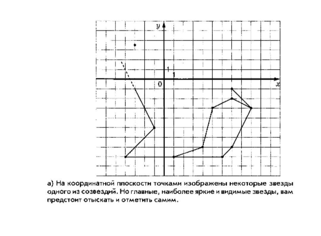 1 клетка равна 1. А звезды обозначены выделяющуимся точками. Эти точки равны: 1) (-1; -5) 2) (-4; -8) 3) (1; -8) 4) (4; -7) 5) (5; -3) 6) (7; -1) 7) (7; -2) 8) (6; -8) 9) (7; -7) 10) (9; -3)