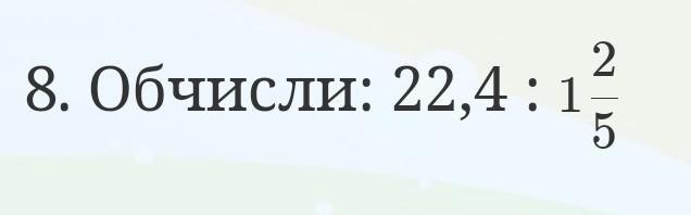 22,4 : 1 2/5 = 112/5 × 2/5 = 224/25 = 8 24/25