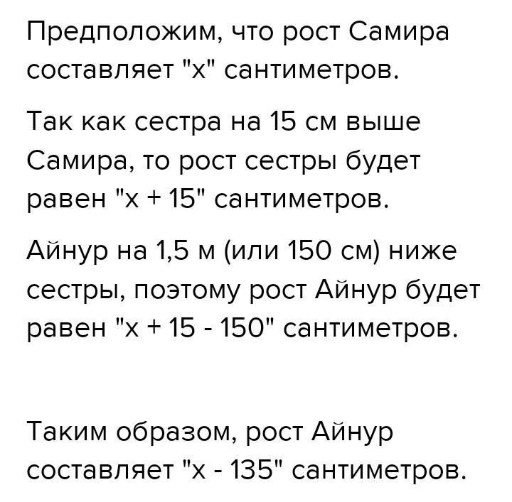 сестра на 15 см выше Самира Айнур на 1/5 м ниже сестры Самира Сколько сантиметров составляет рост Айнур