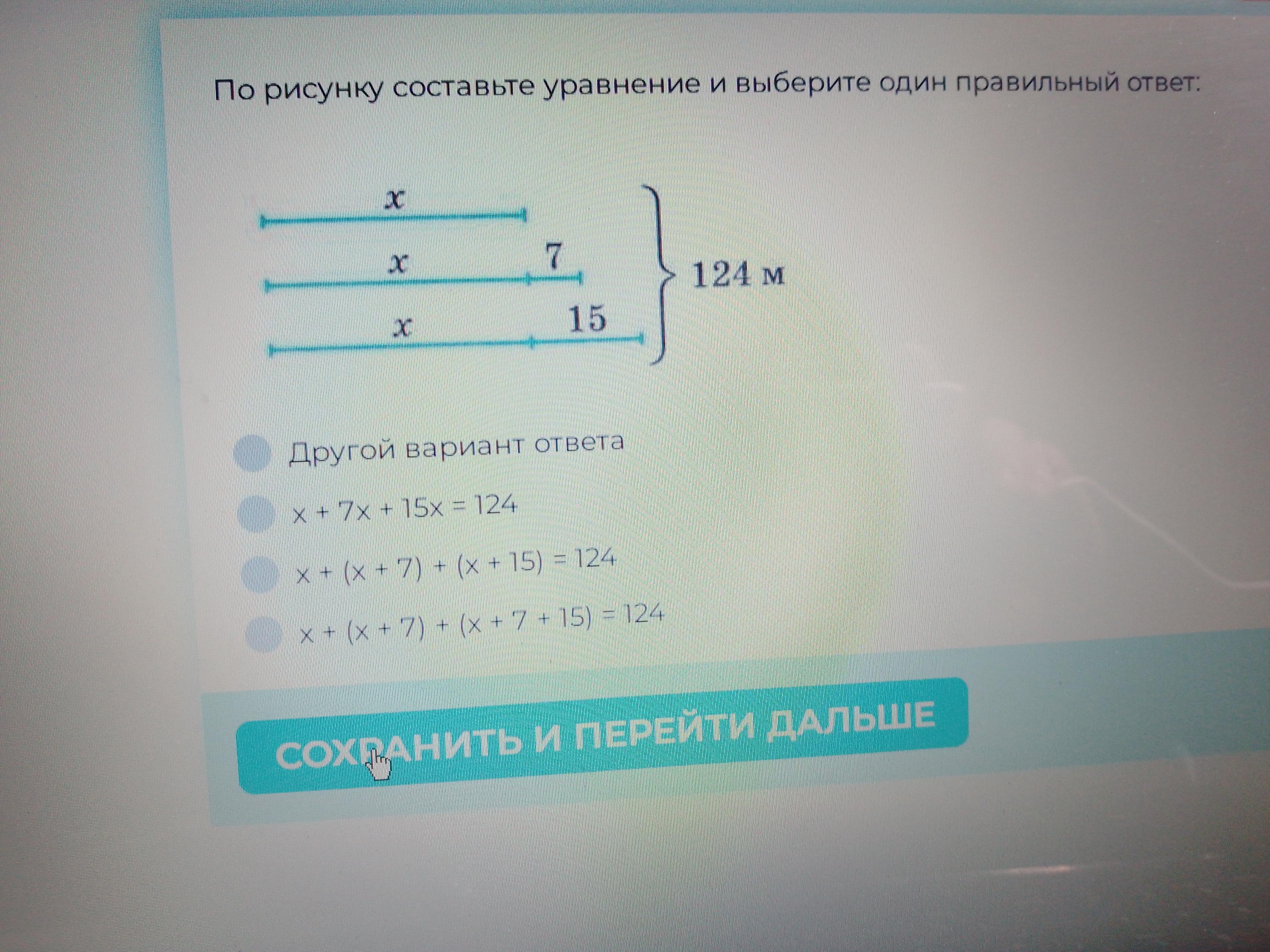 х+(х+7)+(х+15)=124