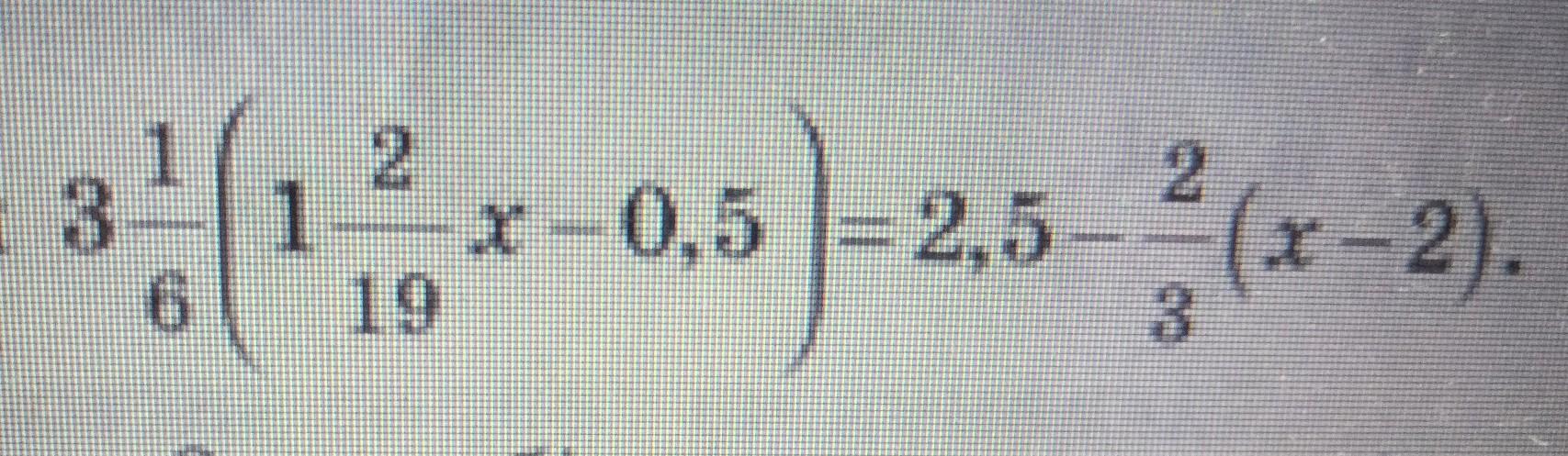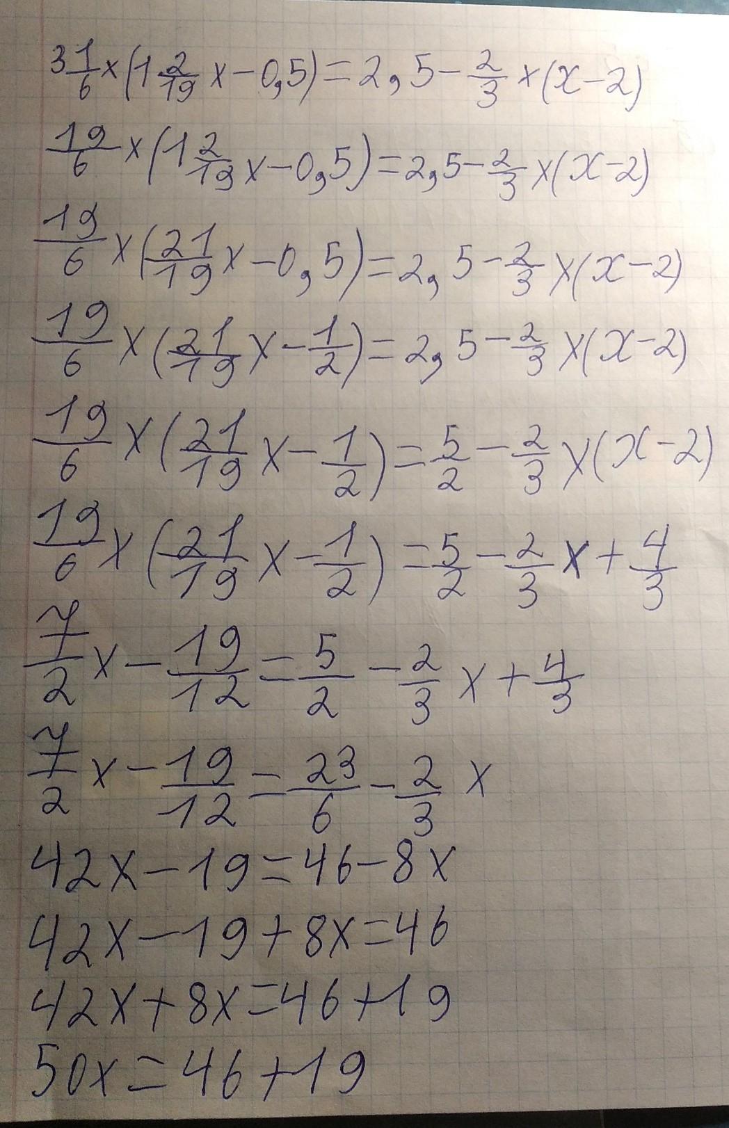 На тебе сайт, много он умеет: https://ru.symbolab.com/solver/step-by-step/3%20%5Cfrac%7B1%7D%7B6%7D%5Cleft(1%20%5Cfrac%7B2%7D%7B19%7Dx-0%2C5%5Cright)%3D2%2C5-%5Cfrac%7B2%7D%7B3%7D%5Cleft(x-2%5Cright)?or=input
