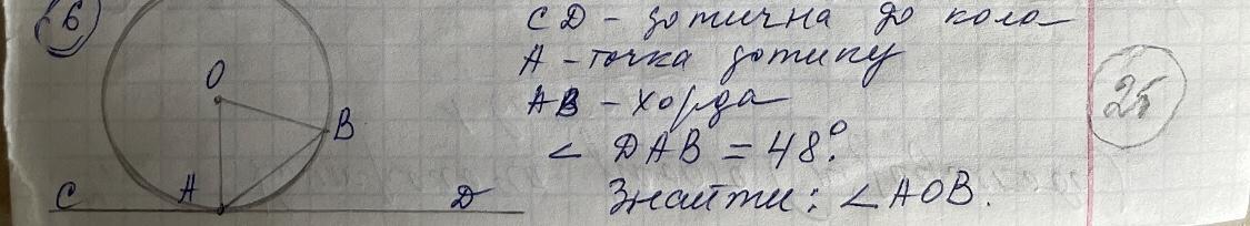 кутАОВ=кутОАД-кутДАБ=90°-48°= 42°