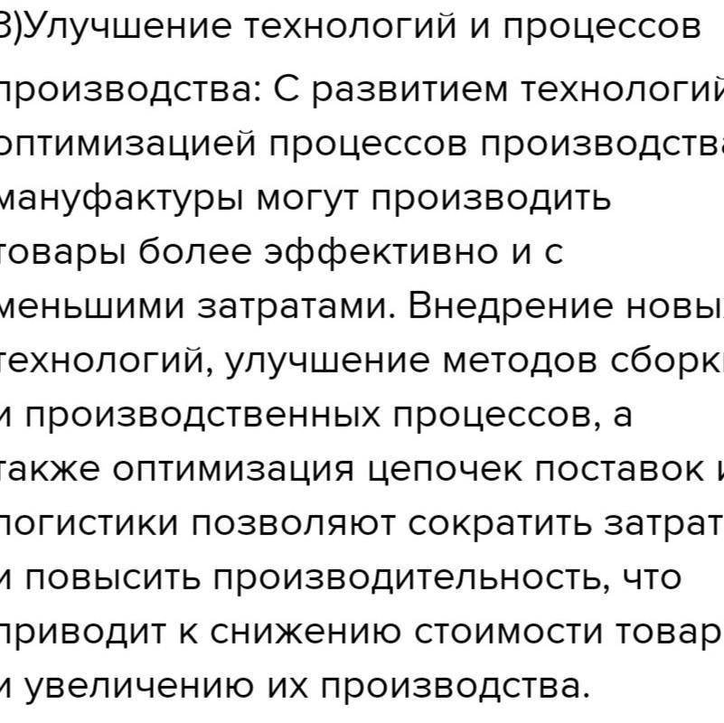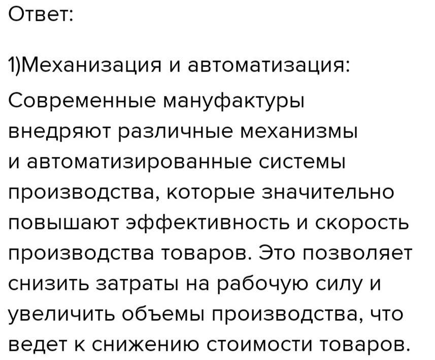 приведите не менее 3-х аргументов почему на мануфактуре товары стали дешевле и производилось их больше?