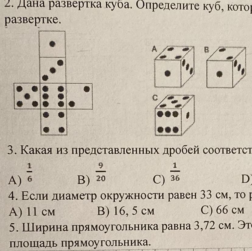 2. Дана развертка куба. Определите куб, который будет соответствовать данной