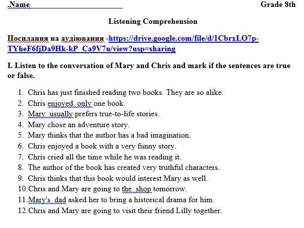 12. Chris and Mary are going to visit their friend Lilly together. - True