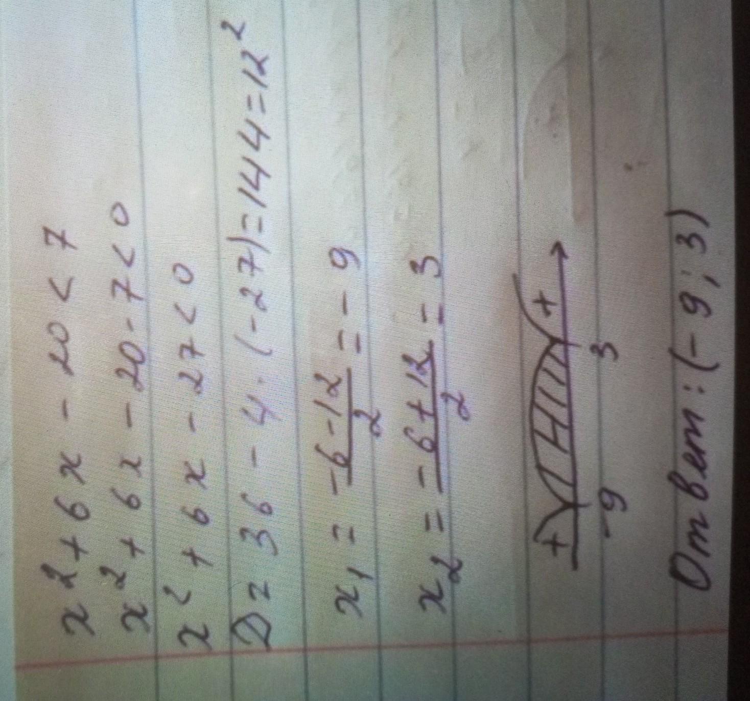 при каких значения х значение квадтратного трехчлена x² + 6x - 20 будет меньше 7 ДАЮ 80 БАЛЛОВ СРОЧНО НАДО