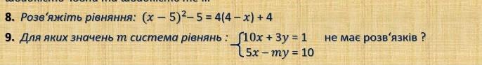 8. Розв'яжіть рiвняння: (x - 5)²-5 = 4(4 - x) + 4