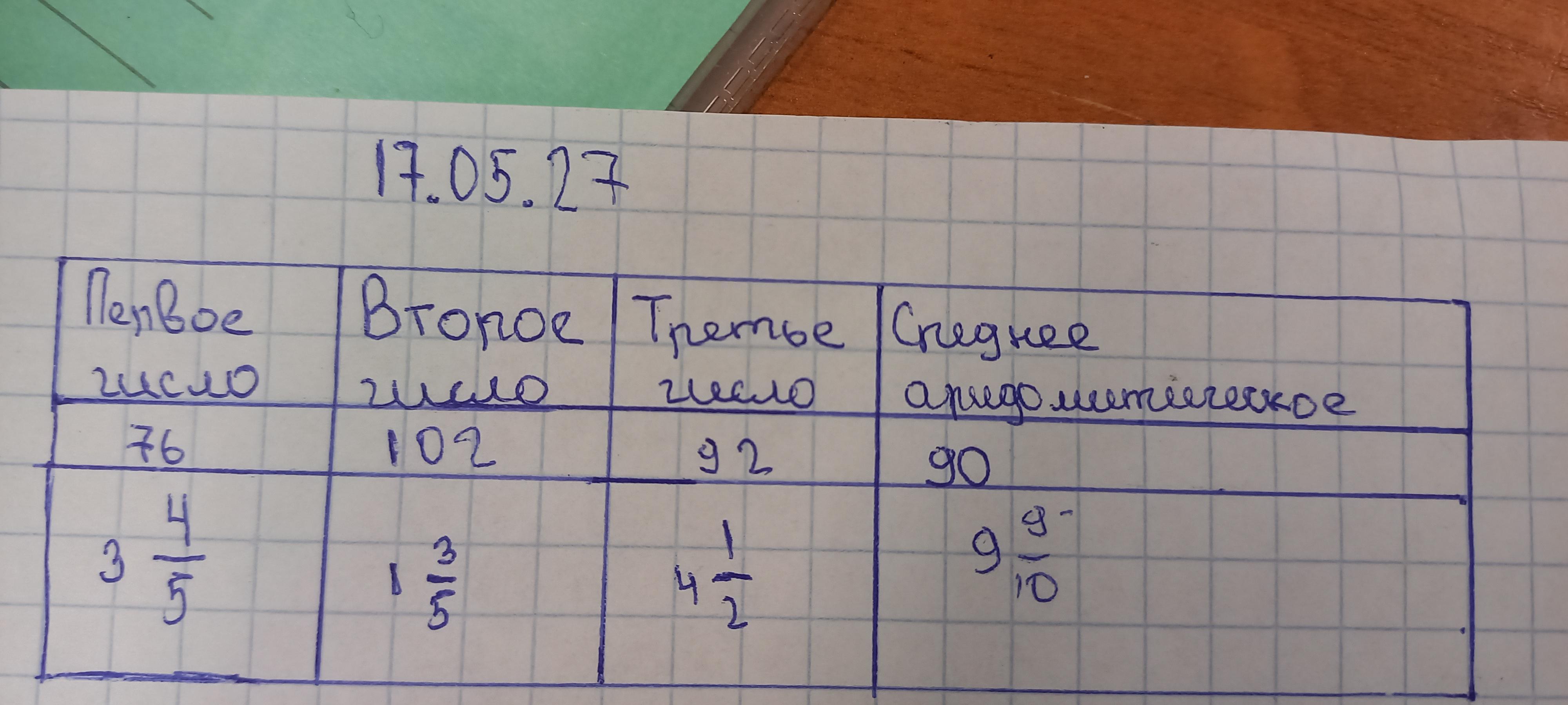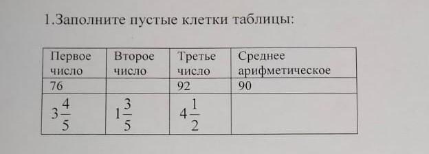 1.Заполните пустые клетки таблицы: Второе Третье Среднее число число 92 Первое число 76 45 3- 3 1³ 5 4¹ 2 арифметическое 90. пожалуйста быстрее
