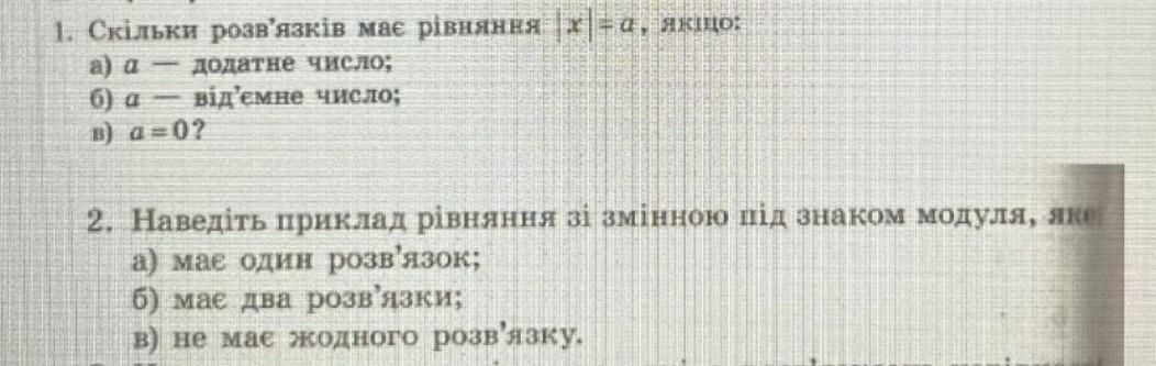 1. Скільки розв'язків має рівняння |x| = a якщо: