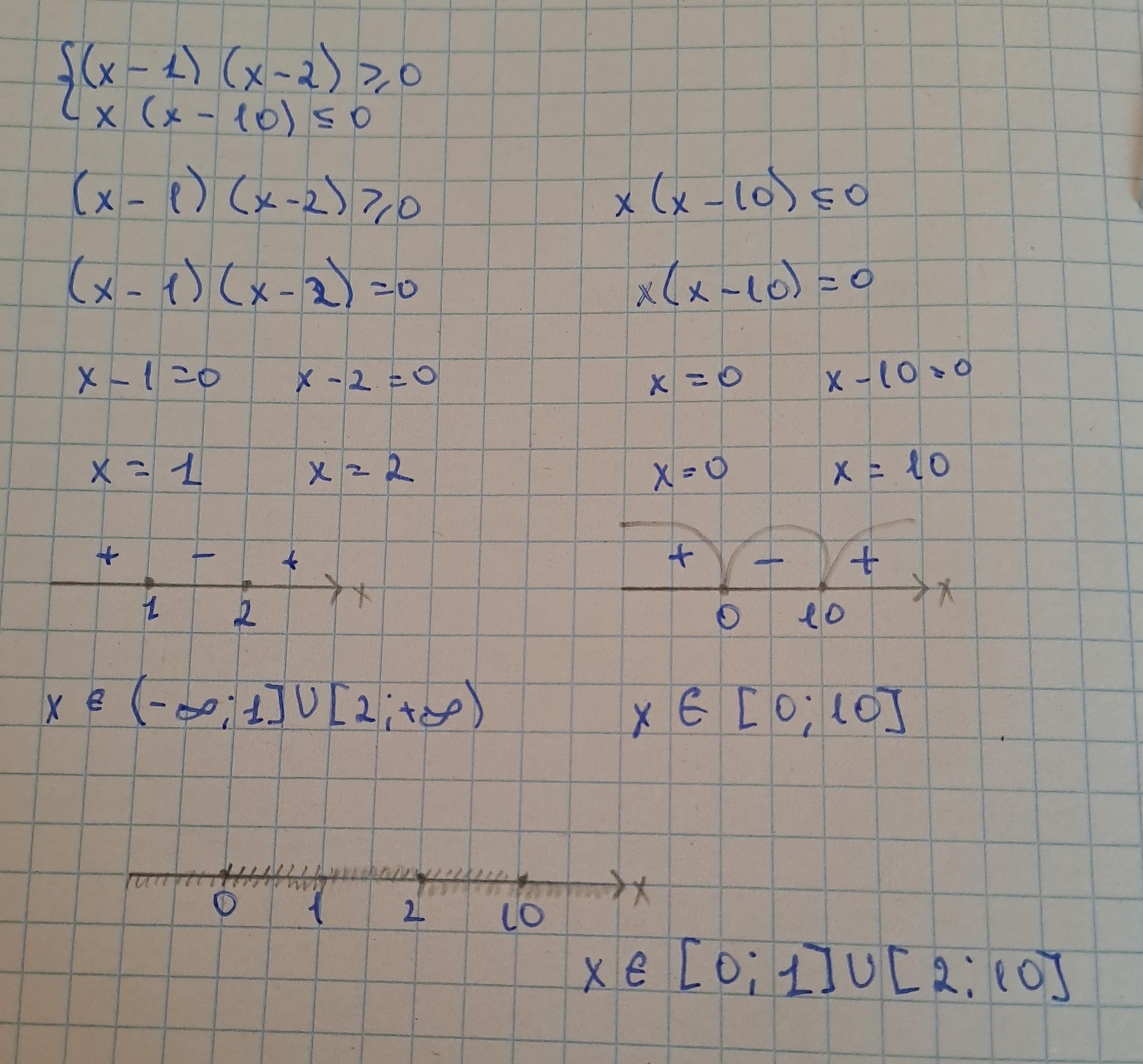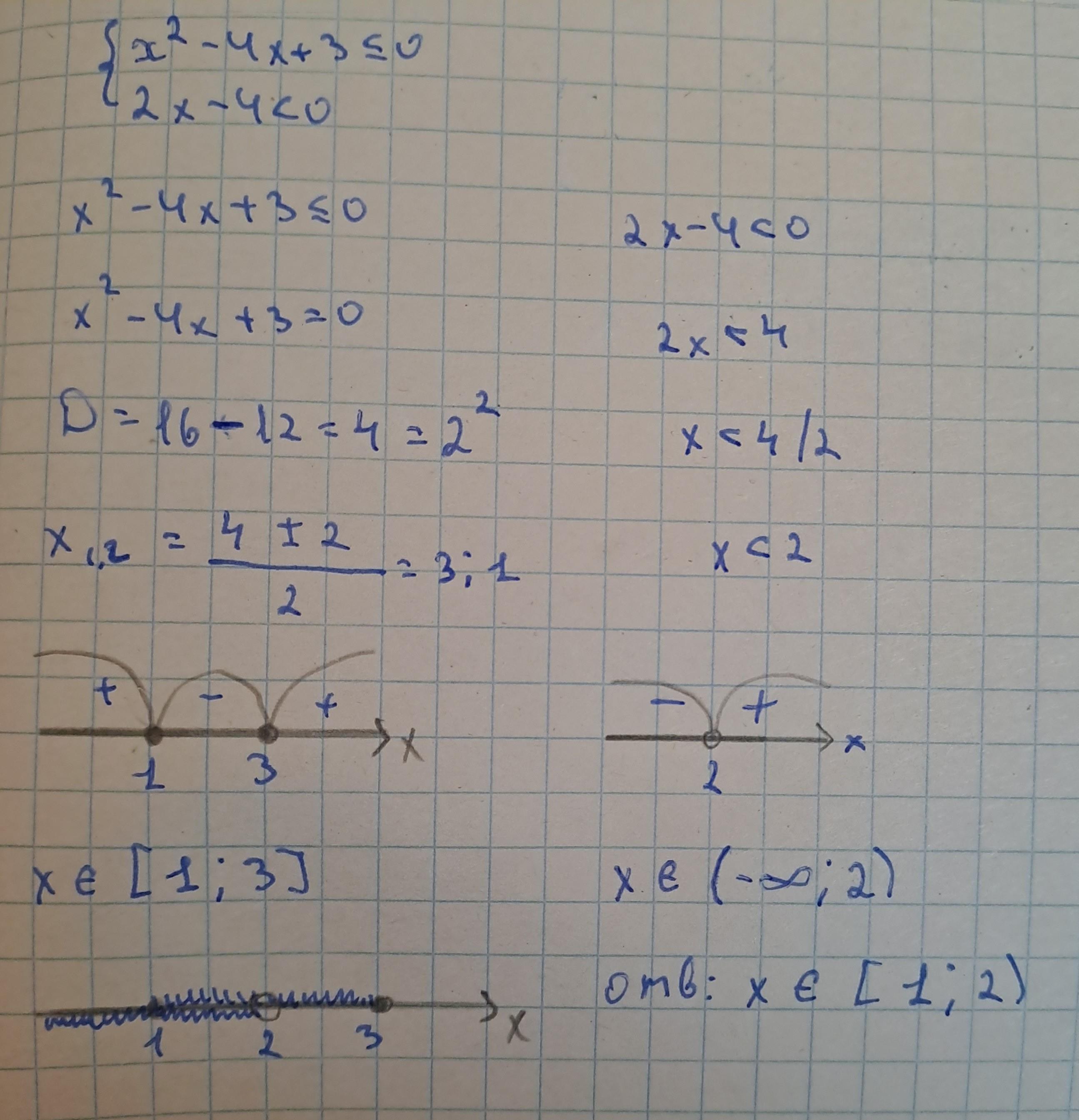 я прикрепила ответы. 3 интервал это решение системы неравенства, а первые два интервала это решение одного неравенства.