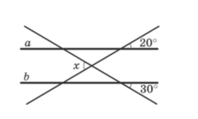 Прямі а і b паралельні. Обчисліть величину кута х ( в градусах).