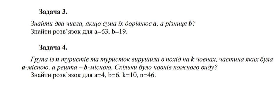 Нам потрібно знайти два числа, якщо їх сума дорівнює а, а різниця дорівнює b.