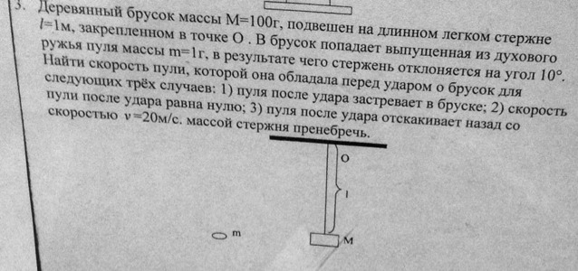 Согласно закону сохранения энергии потенциальная энергия в верхней точке U равна кинетической энергии E=(M+m)·V²/2 в нижней точке