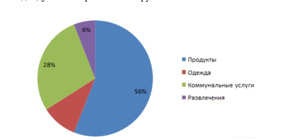 На диаграмме представлен отчет о тратах семьи за прошедший месяц. По