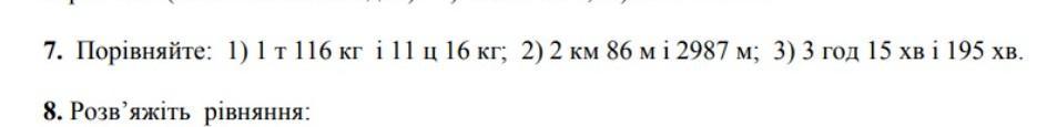 1) 1 т 116 кг = 11ц 16 кг 2) 2км 86 м < 2987 м 3) 3 год 15 хв = 195 хв
