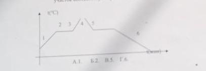 3.Процесс кристаллизации соответствует участку 5 на графике, так как на этом участке температура вещества постепенно падает, и происходит образование кристаллической структуры. Ответ: В - 5.