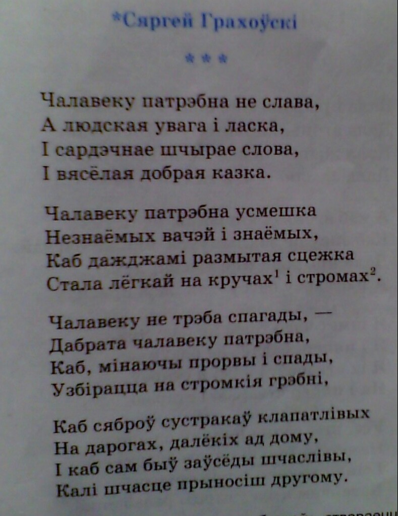 помогите , пожалуйста, написать отклик на стихотворение Сергея Граховского "Чалавеку патрэбна не слова"