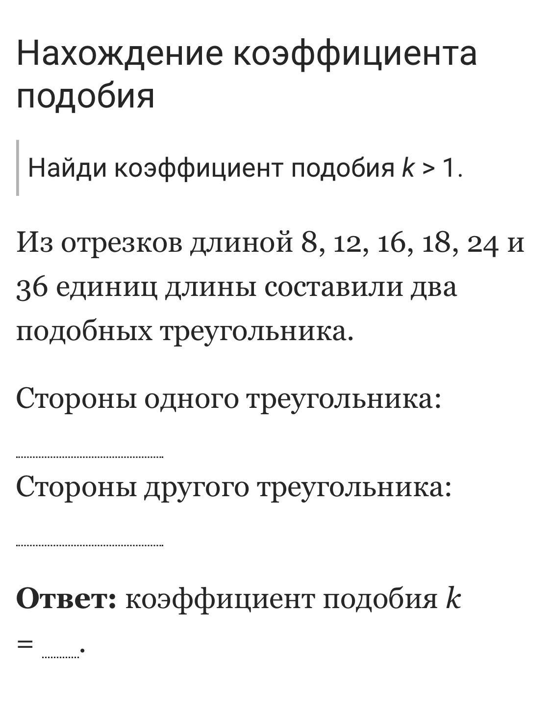 Ответ: 1-й треугольник со сторонами 8, 12 и 18, второй со сторонами 16, 24 и 36, к=2
