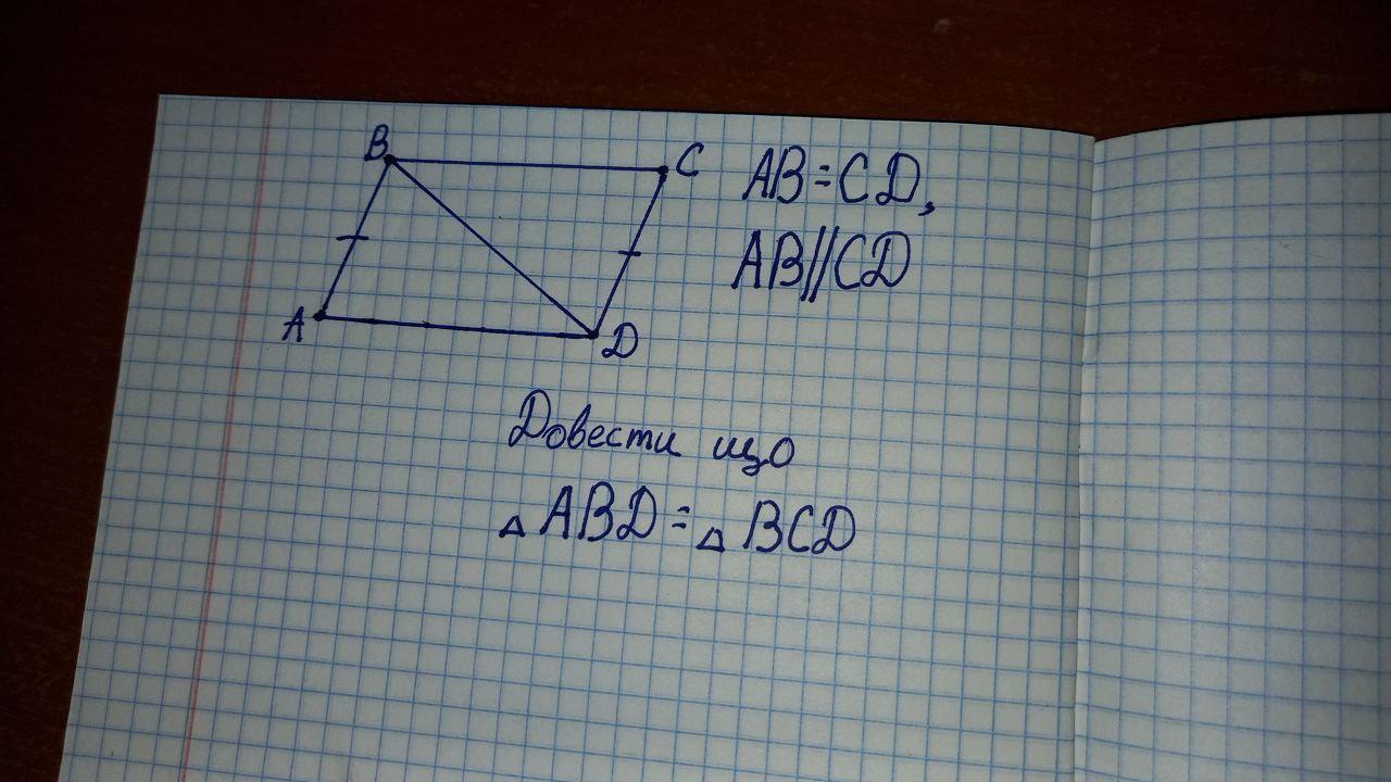 Объяснение: Розглянемо трикутники АВД і СВД, в них: ВД- спільна сторона, АВ=СД за умовою