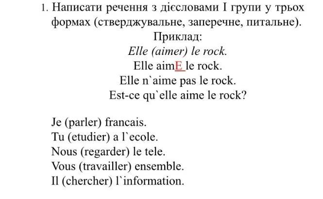 Ось приклади речень з дієсловами I групи у трьох формах (стверджувальне, заперечне, питальне):
