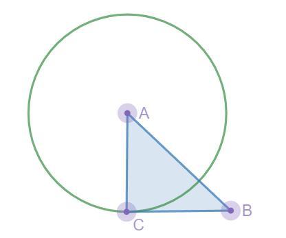 За умовою задачі, кут С є прямим кутом, що означає, що пряма ВС є хордою кола з центром у точці А.