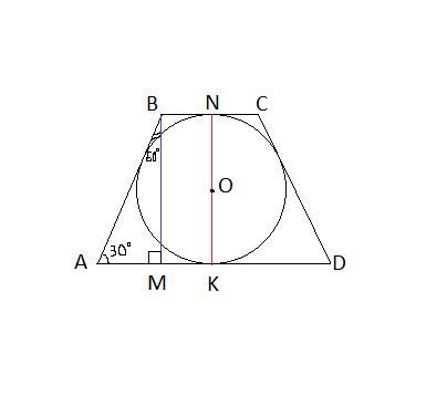 Радіус кола вписаного в рівнобічну трапецію дорівнює а, а один із кутів трапеції становить 60 градусів. Знайдіть площу трапеції Даю 100б!!!! поясніть