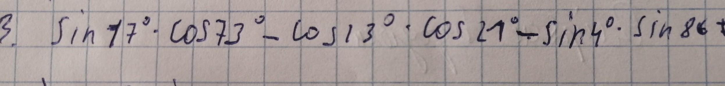 cos17° cos73 - sin13° cos21 - cos4° cos86° =0