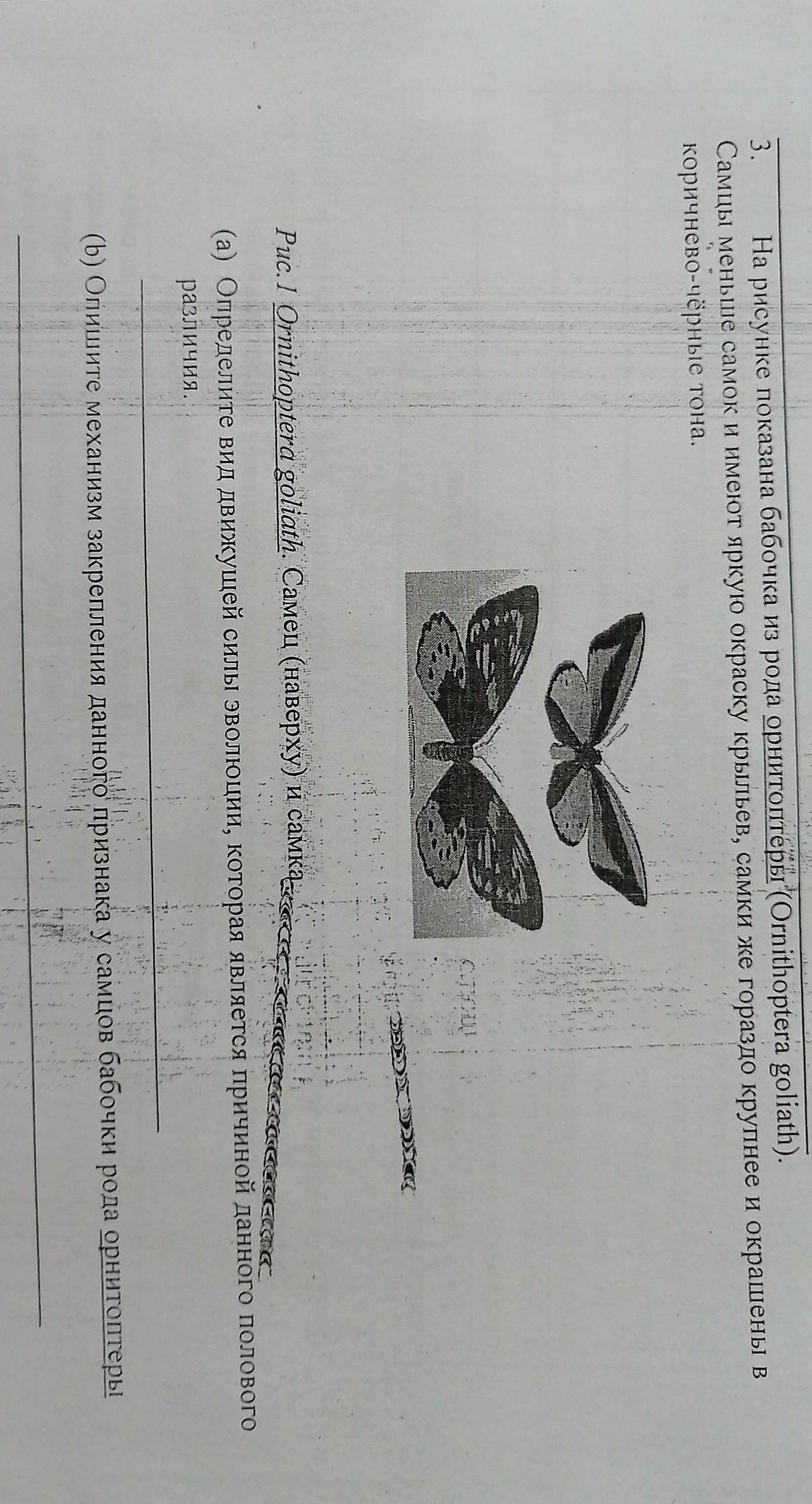 а) Половое различие в размере и окраске крыльев у самцов и самок бабочки из рода орнитоптеры обусловлено сексуальным отбором.