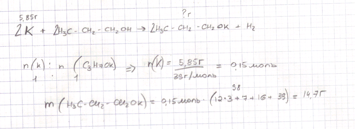Рассчитайте массу алкоголята калия, который образуется при взаимодействии 5,85 г калия с пропанолом.